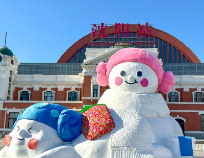 沈阳:可爱雪人迎游客