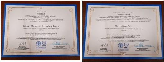 近日,在国际原子能机构第65届大会上,联合国粮农组织(FAO)和国际原子能机构(IAEA)联合授予中国农业科学院作物科学研究所小麦诱变育种团队“卓越成就奖”、授予该团队成员郭会君副研究员“植物诱变育种女性成就奖”。这是该团队继2014年荣获FAO/IAEA联合授予的诱变育种成就奖之后又一次获奖。