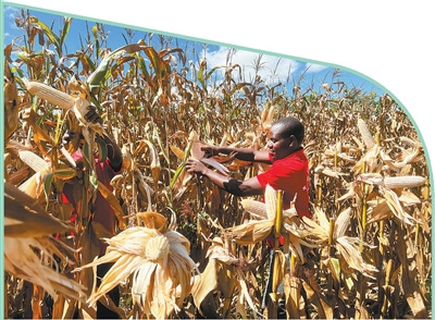 马拉维利萨萨齐县农业技术人员采摘玉米。中国农业大学供图